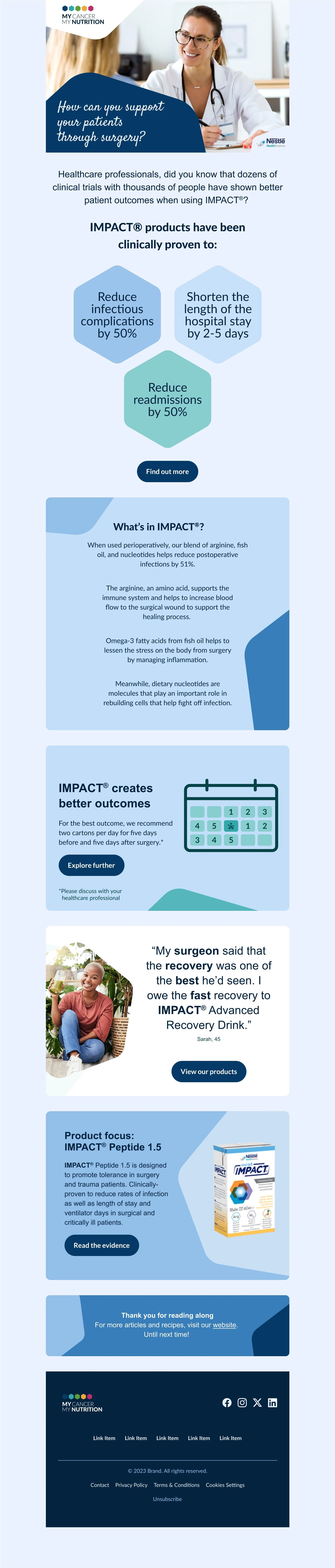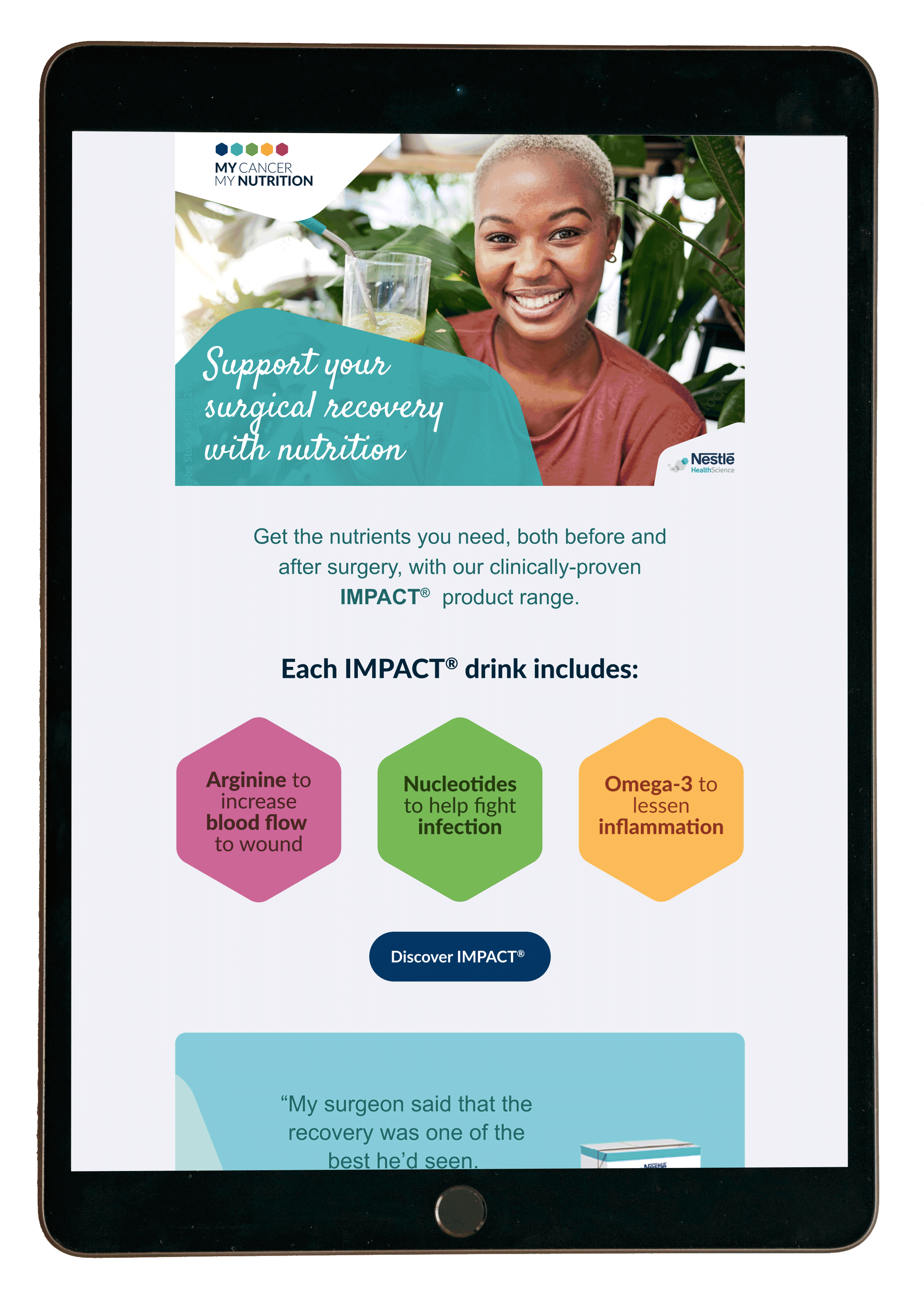 Nestlé Health Science er en del af Nestlé, der fokuserer på ernæringsbaserede løsninger til sundhed og velvære. Deres projekt “My Cancer My Nutrition” er et initiativ, der sigter mod at støtte kræftpatienter med personlig ernæringsvejledning og produkter. Programmet tilbyder kostplaner, opskrifter og råd til at forbedre patienters ernæringstilstand før, under og efter kræftbehandling. Dette kan afhjælpe symptomer og støtte helbredelse.
